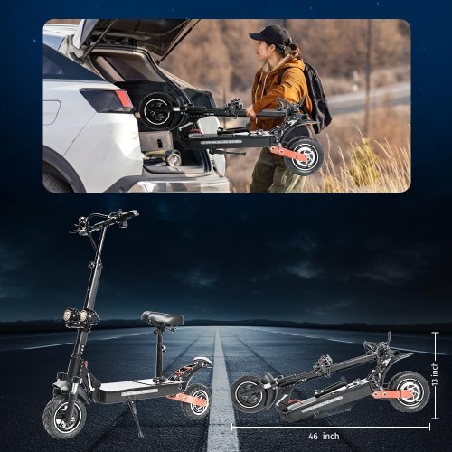Designed with a foldable frame and removable seat, it offers flexibility for both standing and seated riding. Whether you’re navigating city streets or exploring new routes, this scooter delivers a smooth and stable experience.