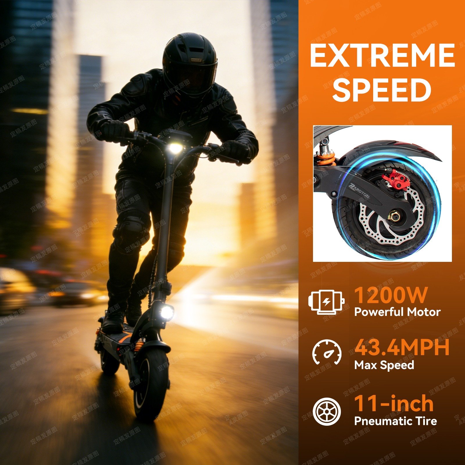 Equipped with a 1200W motor, delivering strong acceleration and stable performance for city and off-road riding.